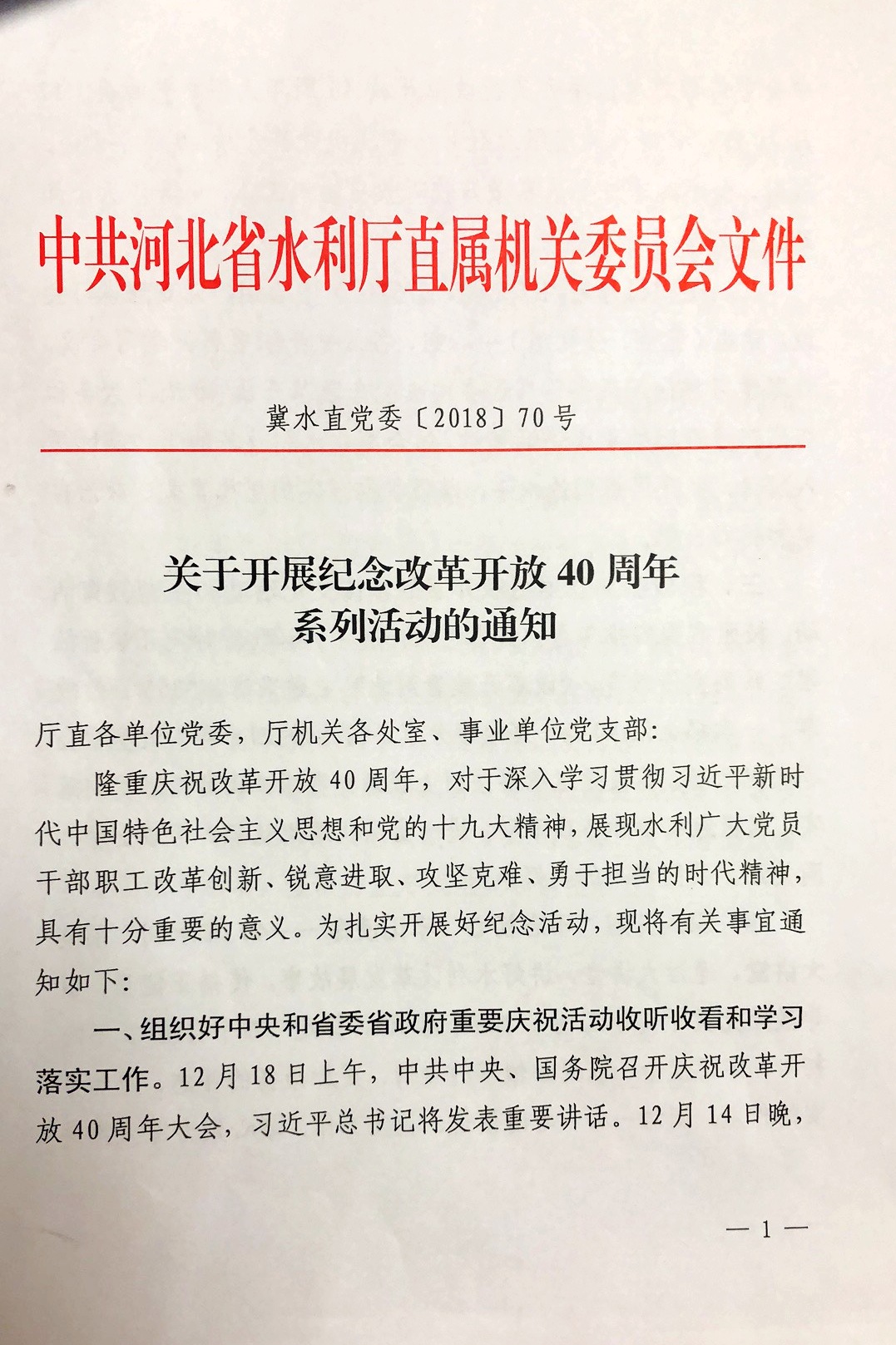 關于開展紀念改革開放40周年系列活動的通知